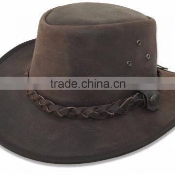 The Hat Company Outback real leather bush hat with plaited band, internal comfort band and chin strap.