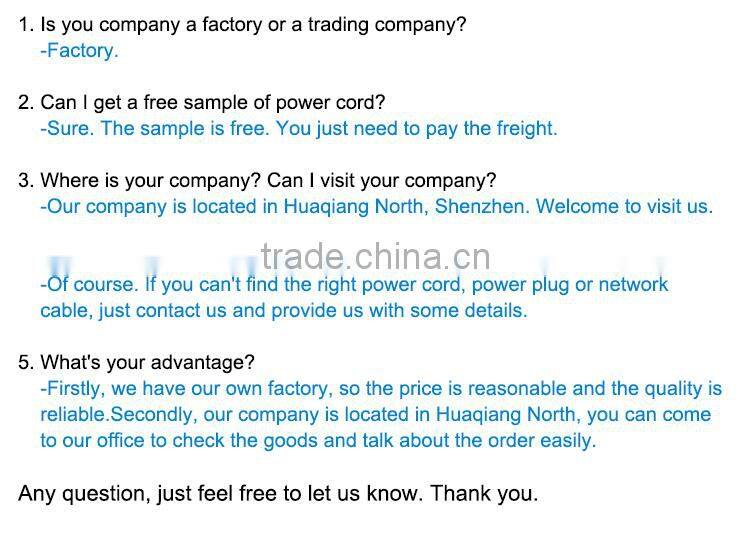 1.Professional Manufacturer is specialized in producing high quality power cord, network lines,audio lines & other computer peripherals wire. |