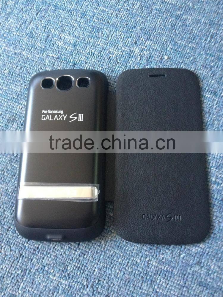 Flip leather power case for Samsung Galaxy S3 I9300, stand battery case for Samsung S3, for galaxy S3 protector battery case