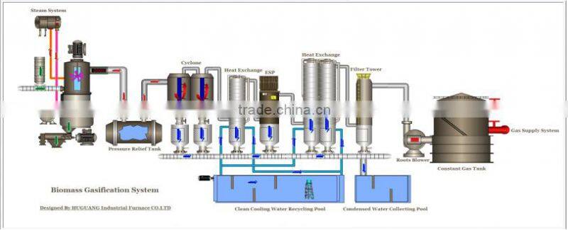 2). Clean technology. Biomass, as one kind of renewable energy, may reduce the emission of carbon dioxide, sulfur dioxide causing from fossil fuel. Nitrogen oxides emission is very limited in our biomass gasification power generating system because of low temperature (700℃~900℃).