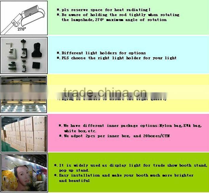We are professional manufacturer of adertising lights, such as, trade show display light,exhibition arm light, pop up light, LED module and LED Backlight. We have been in this line for about 10 years, Based on our experience,our reasonable price, high quality and considerate service. Our products enjoy high reputation in our domestic and oversea market.