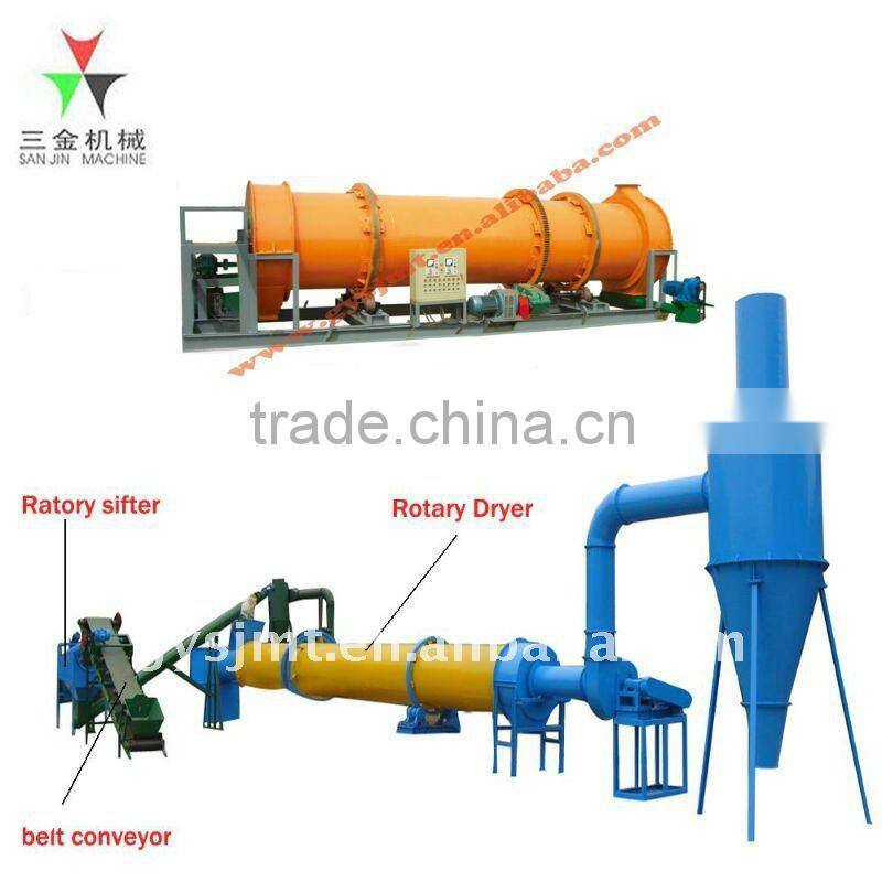 Rotary dryer is to dry the wet materials with the humidity of 50% through rotation and extract from the end of the roller. It can reach drying one time.