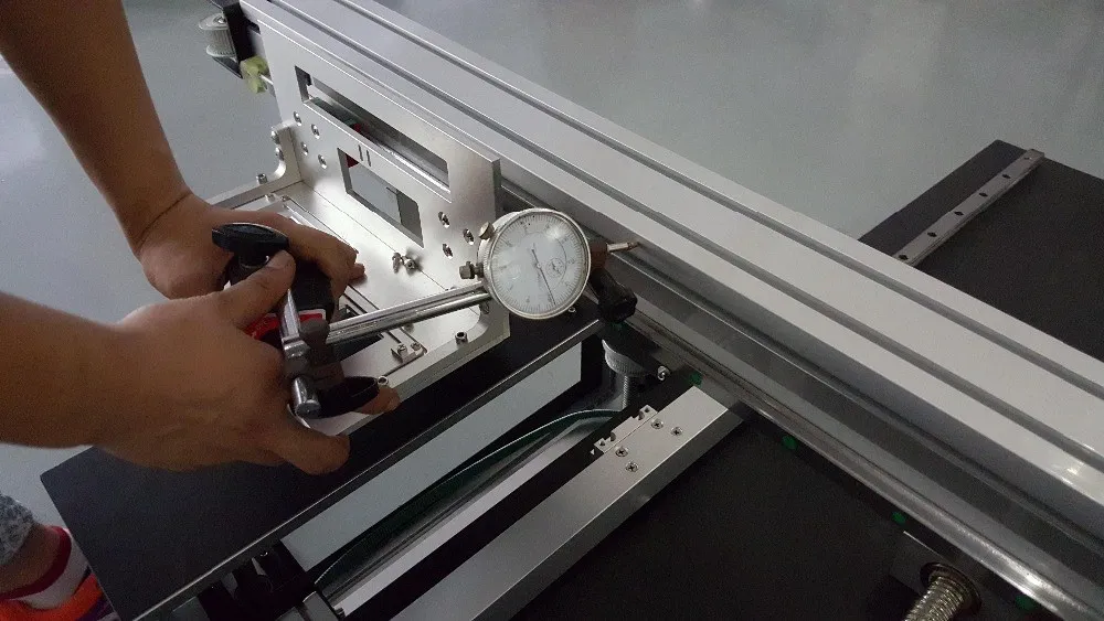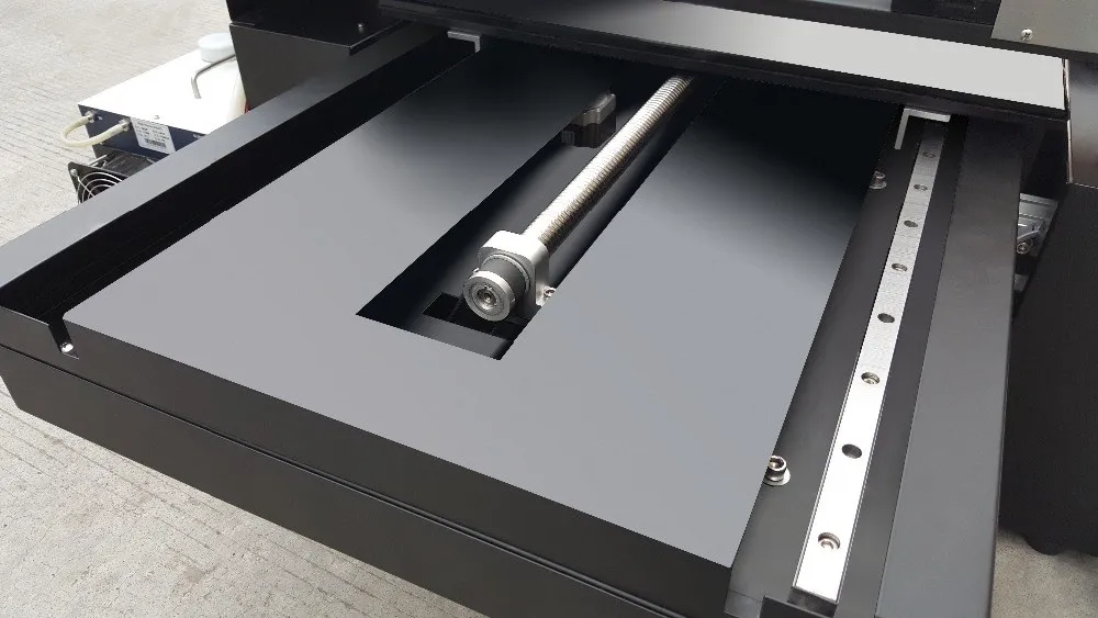The flatbed was mounted by four ball screw at each angle of the flatbed, also drived by the servo motor. to be sure the distance gap between the flatbed and print head are the same of each position for get a water level to prevent head scratched during printing.