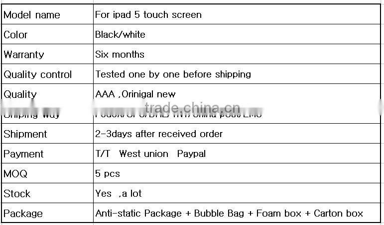 replacement touch screen for ipad air ,touch panel for ipad 5 digitizer