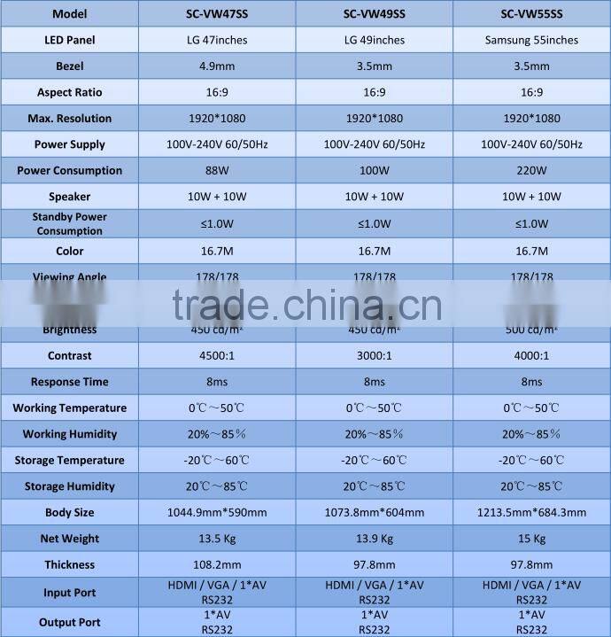 47 Inch HD Video Wall Wifi,3G,HDMI,DVI,USB Samsung/LG LCD Display Player