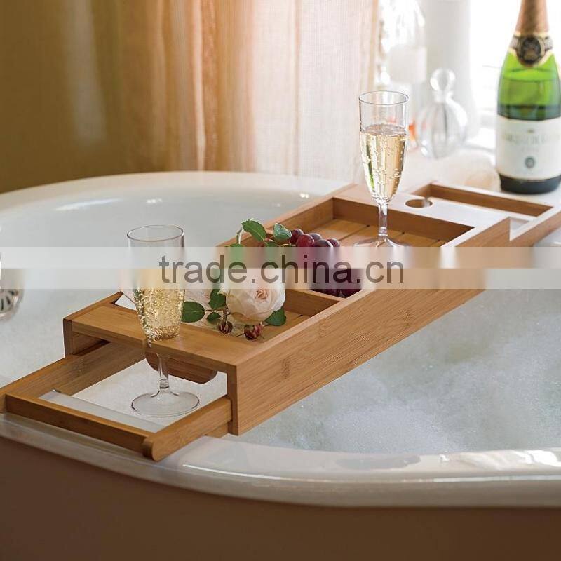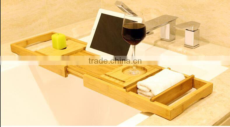 Bamboo Bathtub tray Caddy with Extending Sides and Adjustable Book Holder new bathroom rack with bath soap and Stemware holder