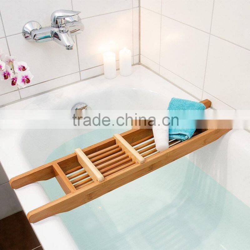 Bamboo Bathtub Tray Caddy With Extending Sides and Adjustable Book Holder New Bathroom Rack With Bath Soap and Stemware Holder Quality Choice