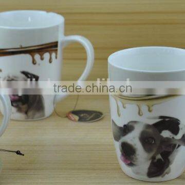 11OZ Silly Dog Full Decal Print Coffee Cups, Shiny Surface New Bone China Mug, KL5004-10303
