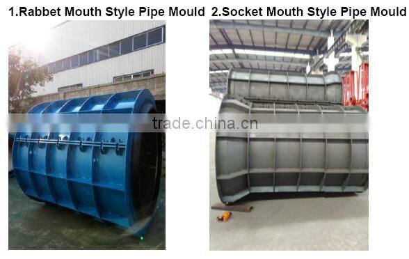 Our high quality concrete pipe moulds used to produce concrete pipes with diameters of 300-2000 mm and length of 2000 mm. The machine uses rolling axis to support the pipe mould and to press the concrete inside the mould when it is rolling. The machine makes full use of the rolling force and centrifugal force to produce high quality and solid concrete pipes.