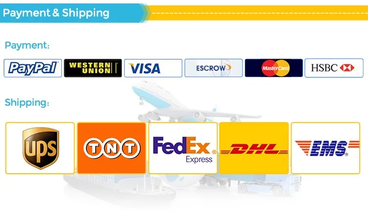 A: We accept L/C,T/T,Alipay, Trade Assurance,Paypal, Western Union.