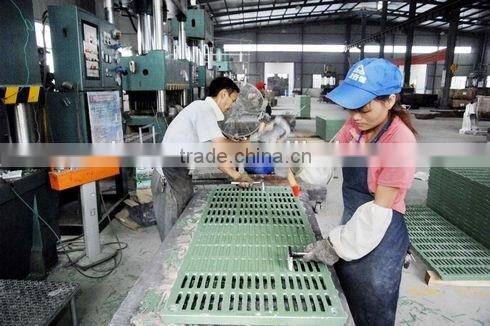 2.Slat floor at sow position is nodular cast iron floor with smooth surface,super load-bearing capacity not easy to break,and reasonable aperture improve the leak dung effect;