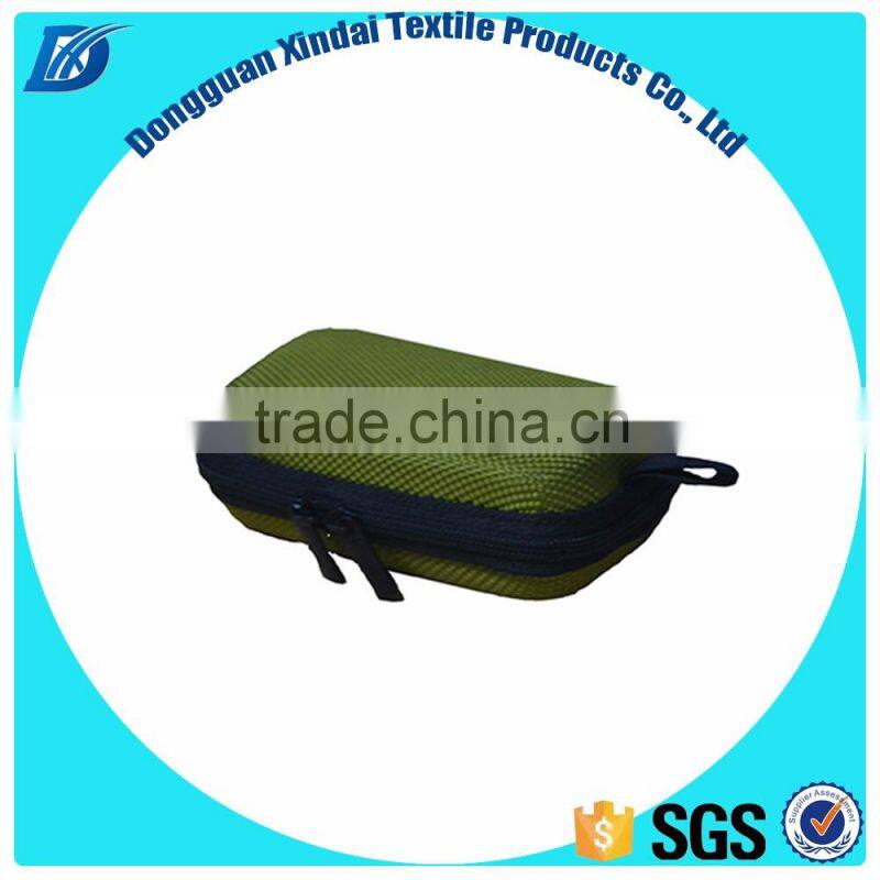 OEM easy carrying waterproof Green EVA earphone case / bag / box with mesh pocket and handle