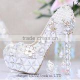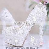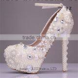 OW17 pure white lace beads wedding shoes sexy high heel platform wedding shoes