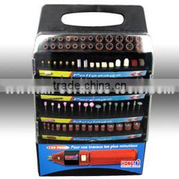 3.6V mini drill, packed in plastic display case with window, include 128pcs accessoriesMini drill set,mini tool set,rotary drill
