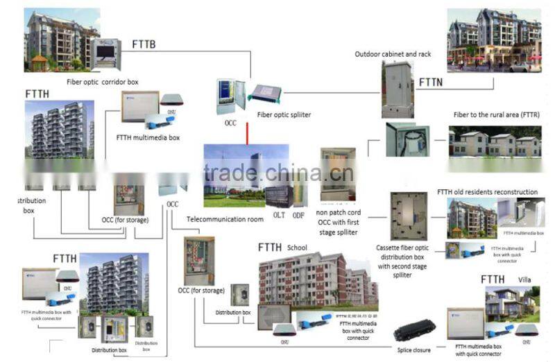 Optical cross Connection Cabinet is applied to connect the trunk fiber optic cable and the distribution fiber optic cable. With the functions of moisture consendation-proof, water-proof, dust-proof, pests and rat bites-proof, impact resistance, the Optical Cross Connection Cabinet can protect the fiber optic cable connection from outdoor severe changable wheather and confirm the network syestem in normal operation all the time. Meanwhile, it also can be applied for direct fiber connection, jump fiber connection, fiber winding and fiber storage etc.