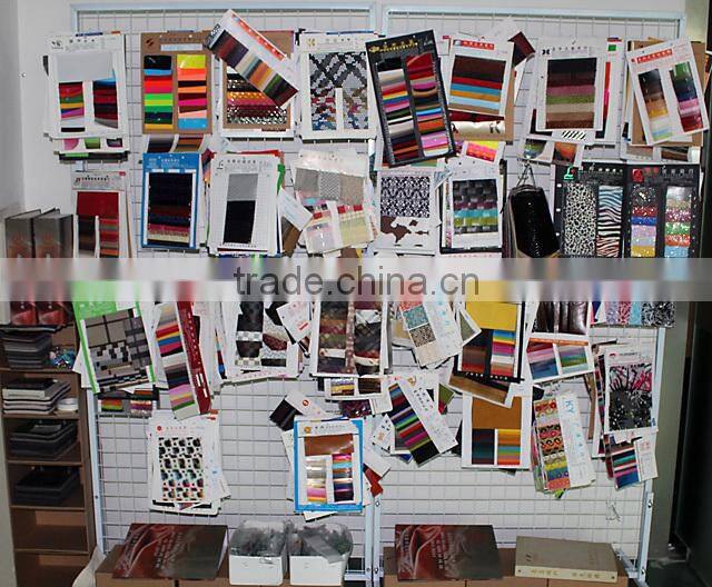 varietyof finishes including: leather, faux leather, fabric and printed cardboard.