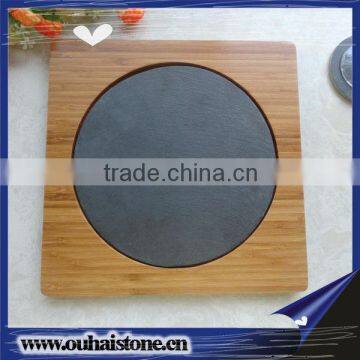 Wood Material Base Hotel Dishes Slate Stone Round Stone Plate