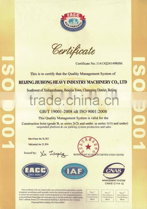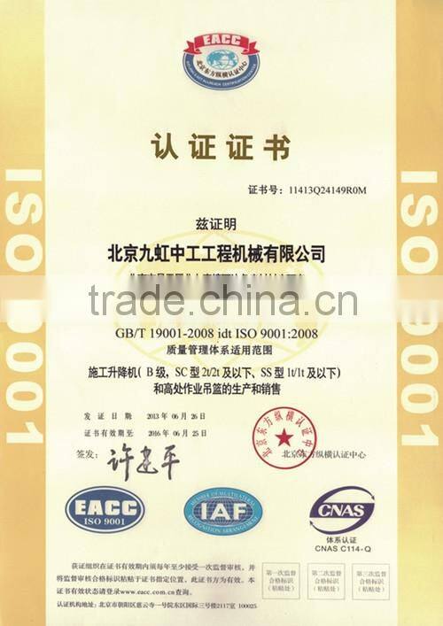 Jiuhong SS100 Famous Product Construction Material Hoist