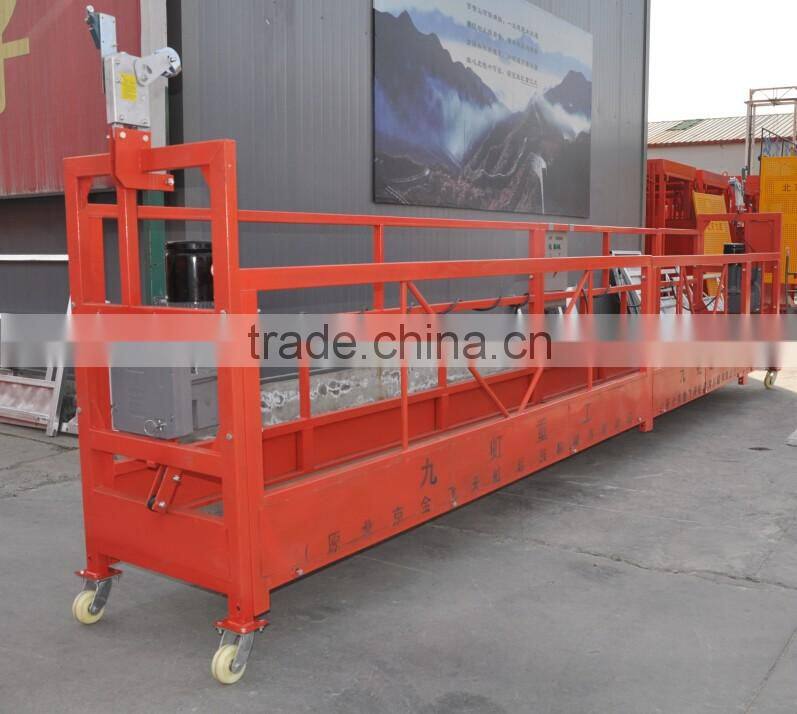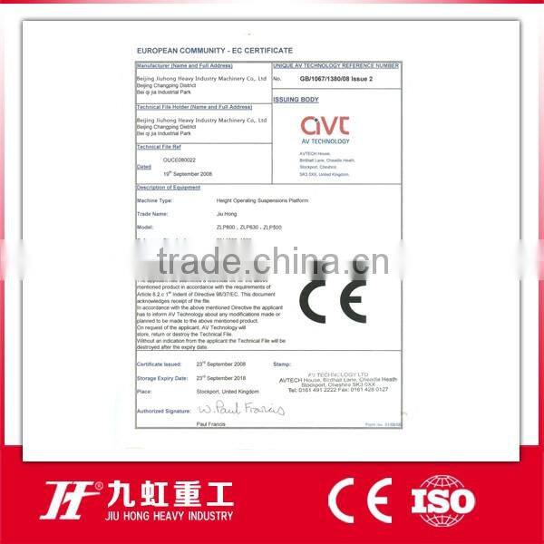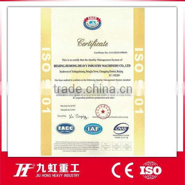 Climing Principle- The suspended platform climbs up along the wire rope driven by the hoist. Without wraping up the wire rope, there is no limit on the height of climing in theory.