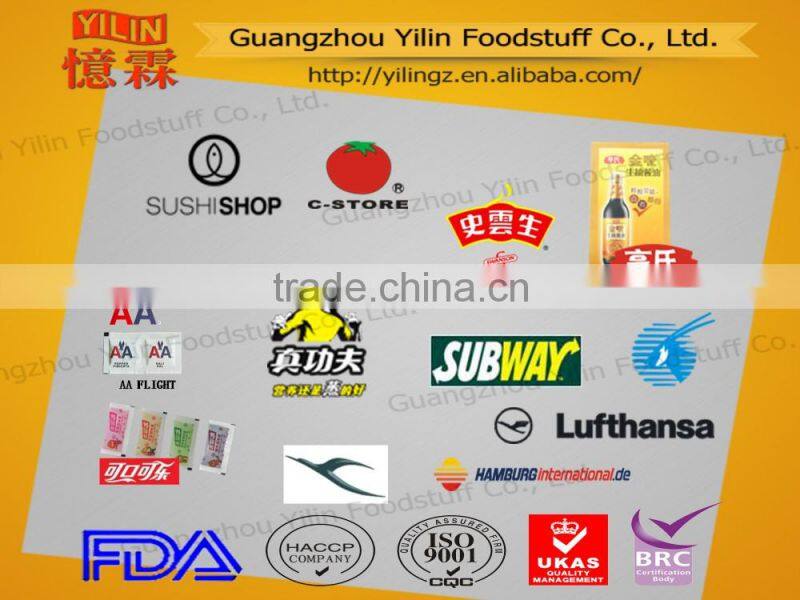 1)Japanese Style Sauce, 2) Soy Sauce, 3) Sauce & Condiment Sachet, 4) West Style Sauce, 5)Fruit Jam , 6) Salad & Mayonnaise, 7) Ketchup , 8)Chili Sauce, 9)Chinese Style Sauce, 10) Marinating Condiment ect.
