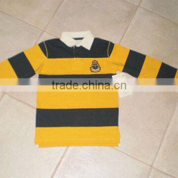 THis is one of the latest kids style Rugby Polo, So many graphics to choose from, not enough time. Great price, great style. Long sleeve tee. Variety of graphic treatments (each tee is different). Shoulder snaps on infant sizes. 100% cotton. Itch free label. Machine washable.