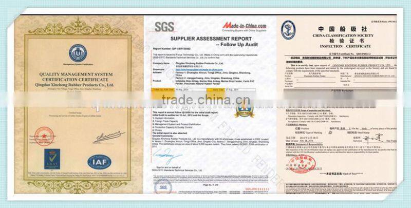 A: We control the quality from the source material to make sure the good level of rubber sheet, and each fender will have pressure test before delivery. " quality first" is always our principle.
