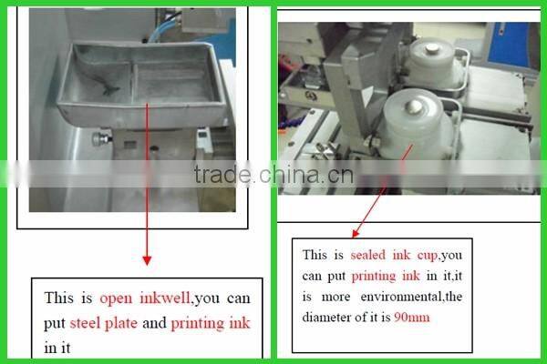 A: Below picture for you comparing. Closed ink cup system with advantages of saving ink and more environmental