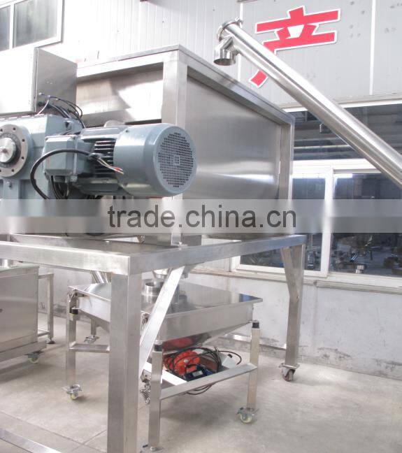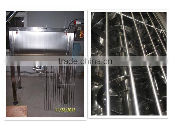 The Horizontal Ribbon Mixer consist of U-Shape tank, spiral and drive parts. The spiral is dual structure. Outer spiral make the material move from the sides to the center of the tank and the inner screw conveyor the material from the center to the sides to get the convective mixing. Our TDPM series Ribbon mixer can mix many kinds material especially for the powder and granular which with stick or cohesion character, or add a little liquid and paste material into powder and granular material. The mixture effect is high. The cover of the tank can be made as open in order to cleaning and change parts easily.