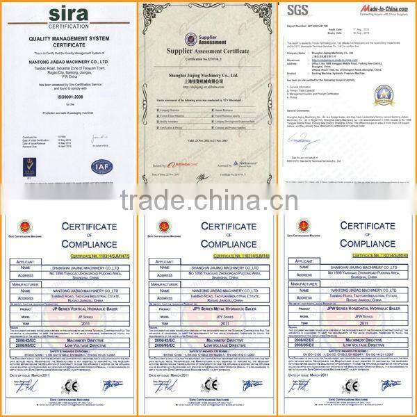 Shanghai Jiajing Machinery Co., Ltd. specializes in the designing, manufacturing and distribution of packaging machines, packaging materials and hydraulic machines. We have excellent engineers and technicians in R&D department. We have factories in Shanghai City and Nantong City. These factories can manufacture more than thousands sets of hydraulic machines. With adopted modem management experience and the advantages of technique, some products of our company have been exported to Japan, Europe and America. We can provide high quality and professional services to our customers. Our environmentally friendly machines can make live the garbage, industry garbage, and attain the classification with compress to handle, protect the living environment, and reduce the conveyance cost. They are societies to develop, and the business enterprise reduces conveyance with warehouse space of essential equipment. Now current supply is short of demand in Euro-American markets, so these products have great development space. The price of my company has strong competition ability in abroad markets. We sincerely welcome all clients to contact us.