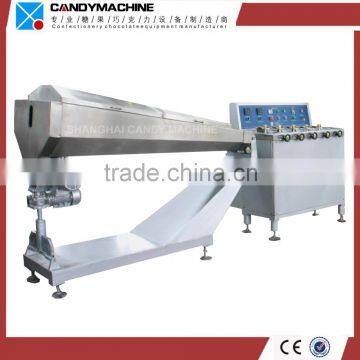 The line is composed of dissolver, storage tank, vacuum cooker, cooling table, batch roller, rope sizer, forming machine, transporting belt, cooling tunnel and central-filled pump etc. The forming dies for hard candies are in a clamping style which is an ideal device for producing different shapes of hard candies, small wastage and high production efficiency. The whole line is manufactured as per GMP standard in accordance with the requirement of GMP Food Industry.