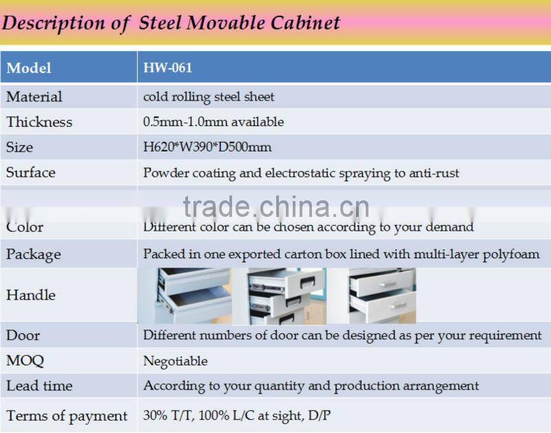 Small Light Weight Stainless Vertical Steel Movable Drawer Cabinet