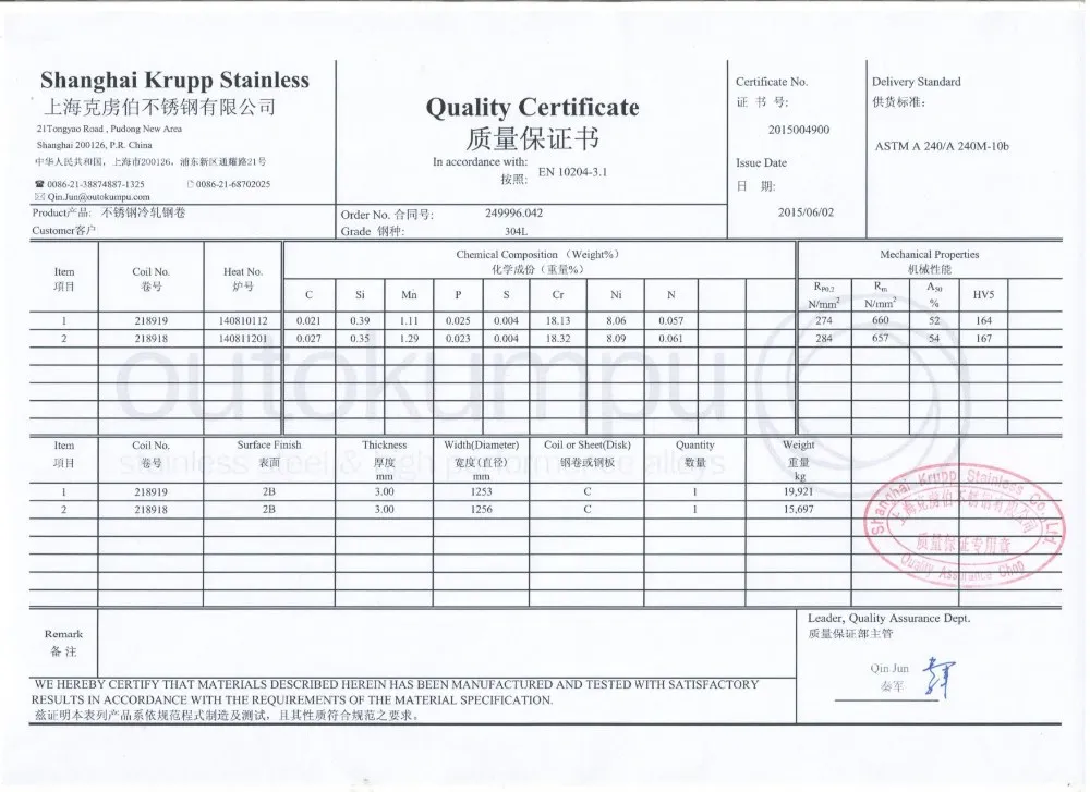 As the first-class agent of TISCO (Taiyuan Iron & Steel Co.), we always distribute the stainless steel sheets in competitive prices. We also established good relationships with other leading stainless steel manufacturers such as BAOSTEEL, ZPSS, LISCO, SKS.