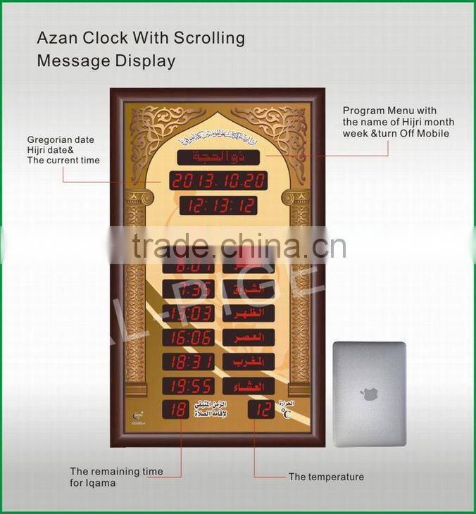 can be configured to display the authorized prayer times in the cities and villages all over the world.