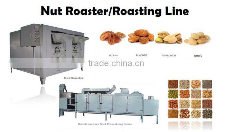 which make our products to get the best quality, color, and moisture content.It have the double wind chamber,this design can make peanuts,almonds, pistachios, macadamias, walnuts, sunflower seeds, nuts etc get balanced dry.Through numerous health characteristics make the allergen removal process is simplified,these features include full surface welding, all close to the body's internal, and eliminate the easy accumulation of clastic area.For the small production line,this roaster can provide a kind of compact configuration.