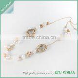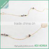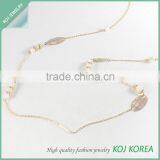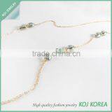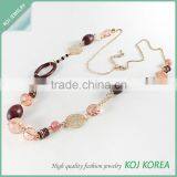 KN-175 Chain&bead Long Necklace/ Gold&pink Color