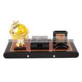 Luxury Wooden Organizer Gifts With Glod Metal Globe And Wood Pen Holder