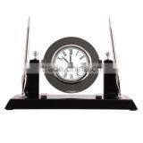Factory Price Directly Wholesale Wood Desk Clock With Two Pen Point