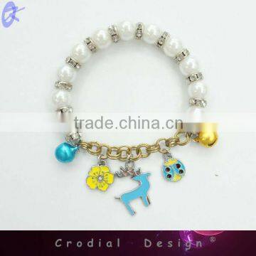 Christmas Design Bracelets Light Blue Oil Drip David's Deer Pendant With Jingle Bell For Christmas Pearl Bracelets