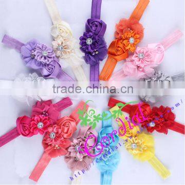 Handmade Rhinestone Center Ribbon Shabby Chiffon Flowers Cheap Wholesale For Hair
