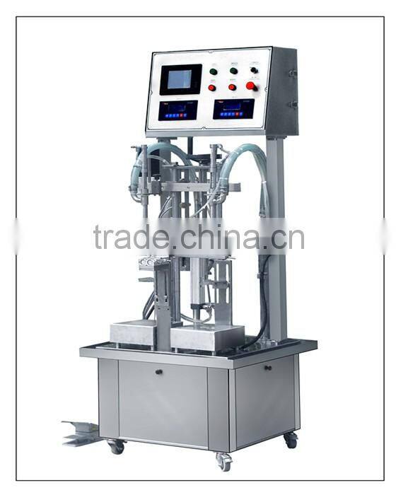 1.This machine with two filling heads is to aim at liquid filling range from 1KG to 8 KG.