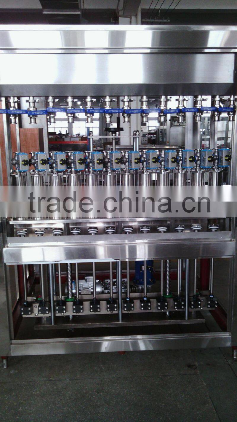 1. It adopts advanced mechanical and electrical integration technology. Any filling specification can easily be done by changing parameters in touch screen. Not only the filling volume of 12 filling heads can be changed substantially, but also each filling head volume can be changed finely.