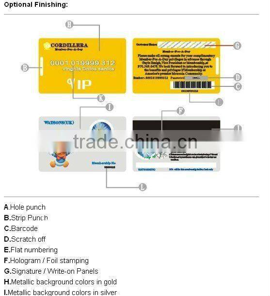 4 color offset printing, magnetic stripe, embossing number, signature panel, photo, barcode, hot-stamping gold/silver color ,scratch-off panel, series number,hole punched, UV Printing etc.
