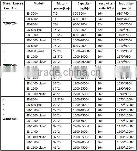 The two kinds of shredder both can be equipped with suitable blades according to therequirement of custome.