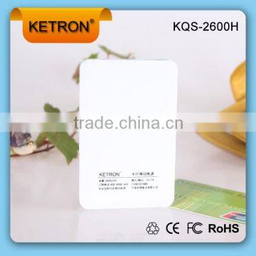 ABS AND pvc 2600mah power bank battery operated motor1.credit card size