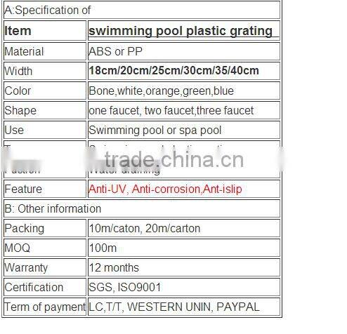 Non Slip Plastic Swimming Pool Water Drainage Grates