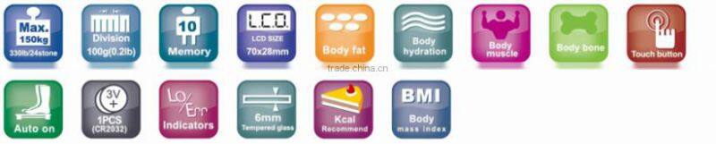 High Accuracy Mini Body Fat & Hydration Scale 150Kg 330lbs 24st LCD 70*28mm