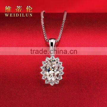 925 Silver Necklace Pendant Oval Shape Syntheric Diamond Setting Pendant Short Chain Necklace