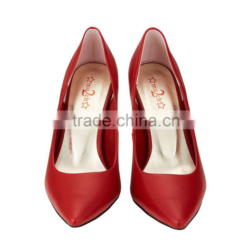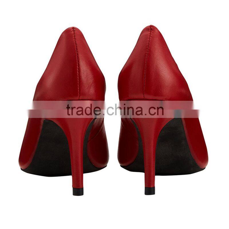 2016 office comftable Pointed toe high heel classic ladies breatheable PU lining comfortable RED sheep skin pump shoes