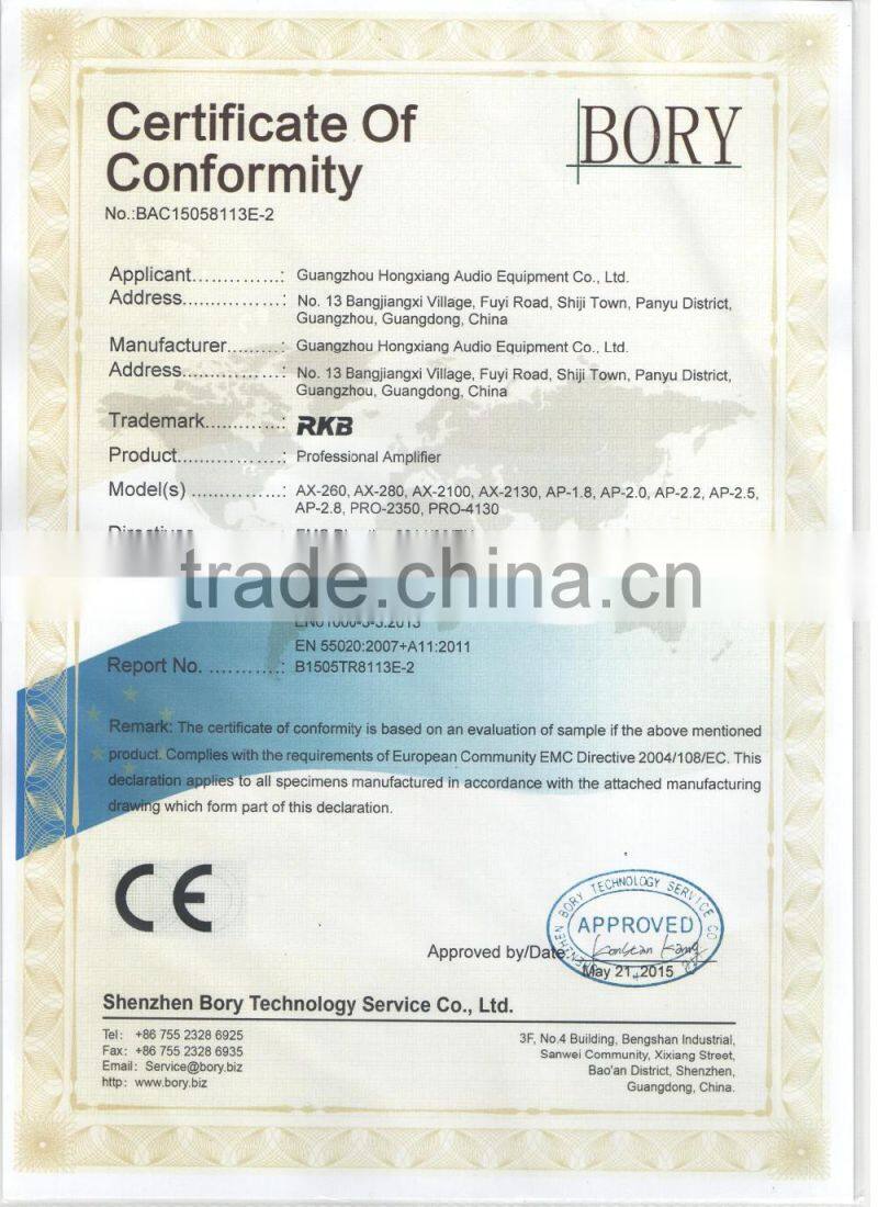 We promise to provide high level of professional audio equipment and best service. Welcome all the customers to visit us and establish business relations with RKB Pro-audio.