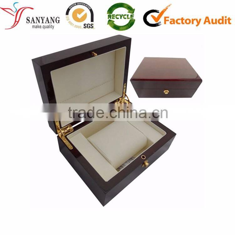 Hinging Wooden Watch Box Packaging With White Foam and EVA Insert